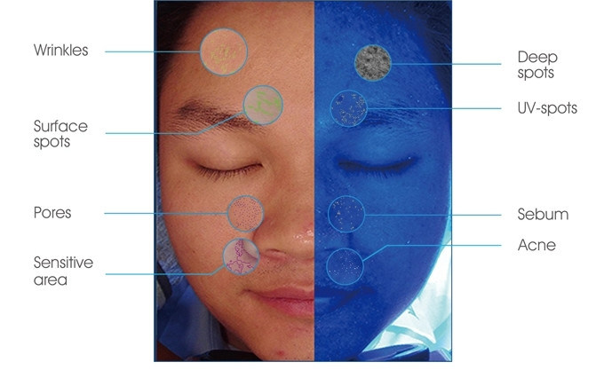 | 5. UV σημεία: Ζημία και σημεία ήλιων στην επιφάνεια και στα βαθιά στρώματα του δέρματος. |